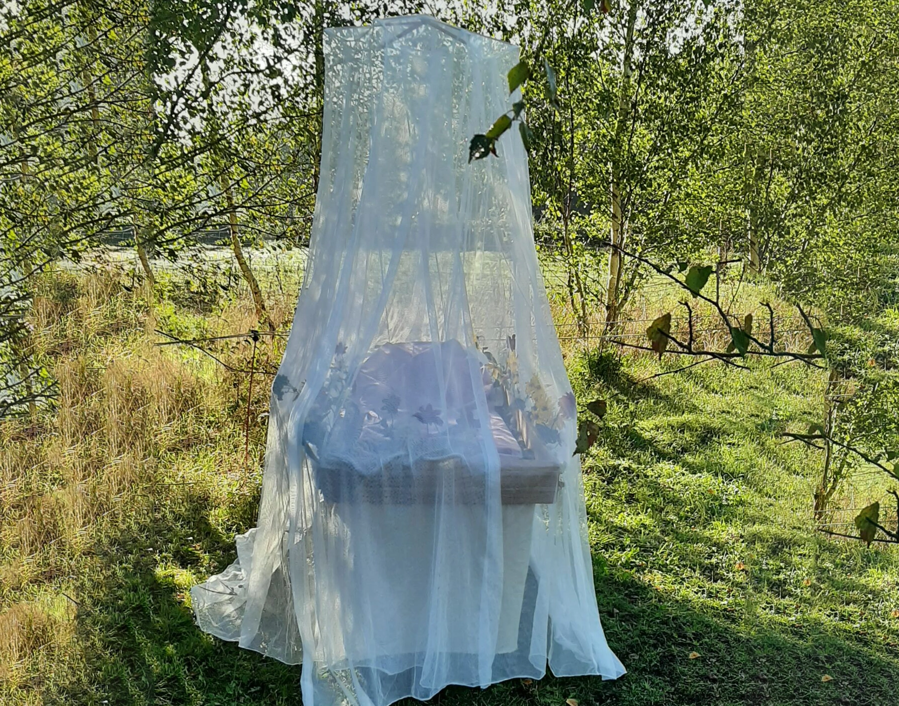 Bijvoorbeeld een (duurzame) kist of een opbaarplank met lijkwade, zelf gemaakt of niet. Ik adviseer ook over opbaren, rouwvervoer en de afscheidsdienst, (natuur)begraven en cremeren. Ik help je desgewenst met de keuze voor een (natuur)begraafplaats of crematorium en eventueel over mogelijke as-bestemmingen.